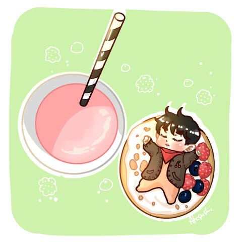 Will draw a sleeping chibi of your bias/favorite character/yourself on pre-drawn bagel topping/donut